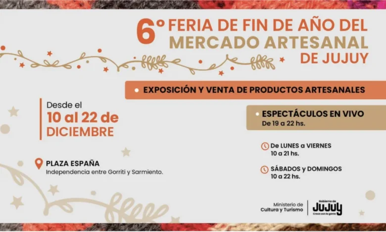 Hasta el 22 de diciembre, la Plaza España se transformará en un espacio vibrante donde artesanos locales desplegarán lo mejor de su producción en la Sexta Feria de Fin de Año del Mercado Artesanal de Jujuy, un evento que combina venta, exposición y entretenimiento.